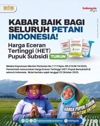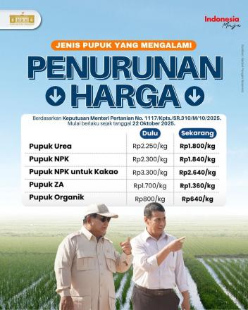 Dalam arahannya, Menteri Pertanian menyampaikan bahwa kebijakan penurunan harga pupuk bersubsidi ditetapkan melalui Keputusan Menteri Pertanian No. 1117/Kpts/SR.310/M/10/2025, yang mulai berlaku 22 Oktober 2025. Adapun daftar harga pupuk terbaru adalah sebagai berikut: