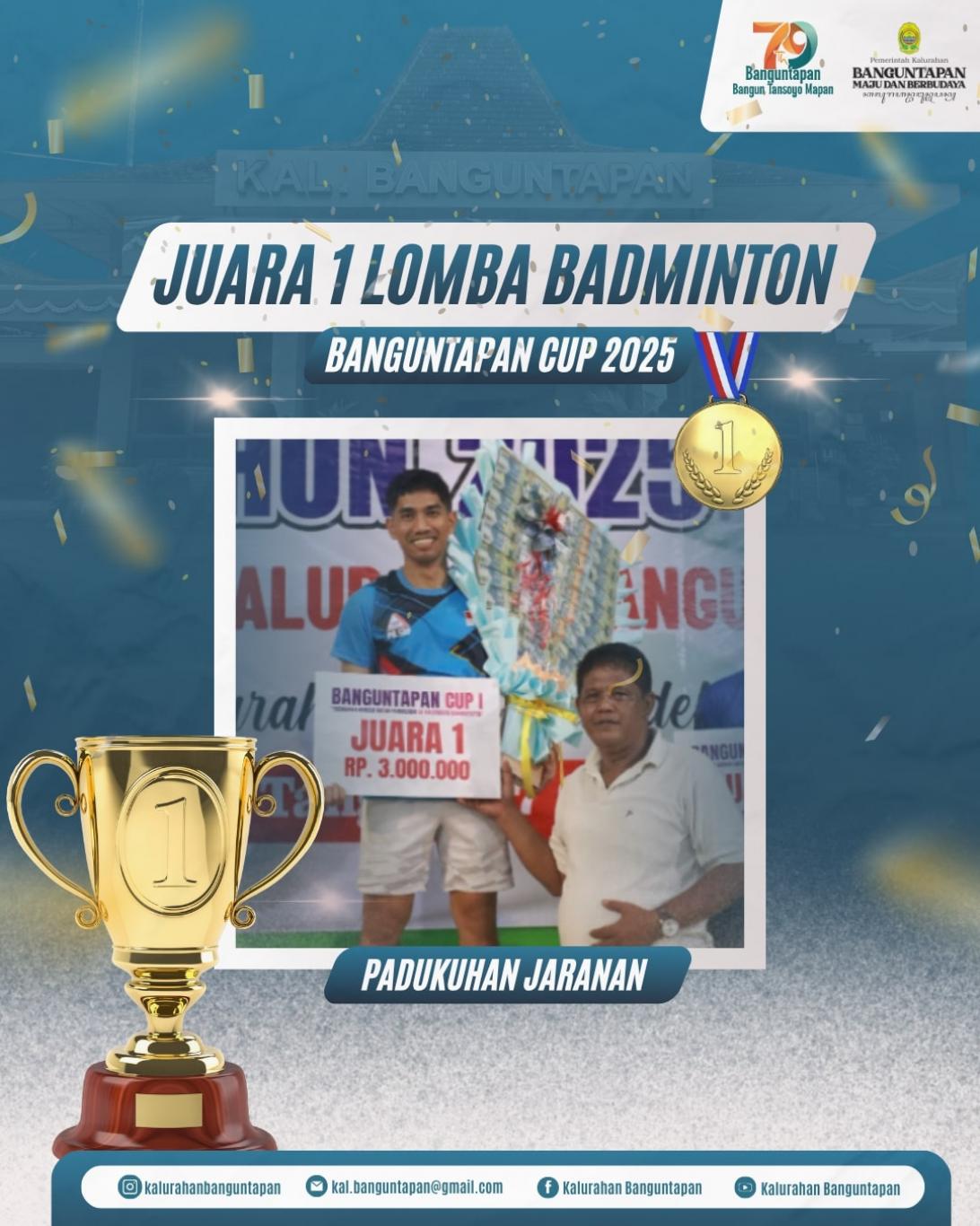 Selamat kepada para juara – Padukuhan Jaranan, Padukuhan Plumbon, dan Padukuhan Jomblangan dan seluruh peserta lomba atas prestasi dan semangat sportivitasnya. Semoga kemenangan ini menjadi motivasi bagi seluruh warga untuk terus berprestasi dan menjaga kekompakan di lingkungan Kalurahan Banguntapan.(MRK)