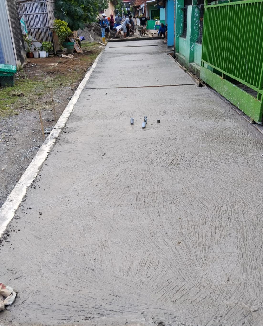 Proses pengecoran dilakukan secara gotong royong antara warga dan pihak terkait, sehingga tidak hanya meningkatkan kualitas jalan, tetapi juga memperkuat kebersamaan dan kepedulian sosial di lingkungan setempat. Jalan yang sebelumnya mengalami kerusakan kini menjadi lebih baik dan nyaman untuk digunakan dalam aktivitas sehari-hari.